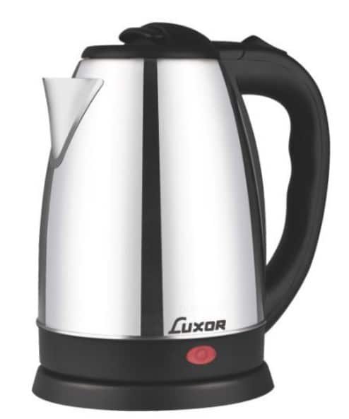 קומקום חשמלי איכותי מבית LUXOR, עשוי נירוסטה אל־חלד בעיצוב קלאסי ונקי.