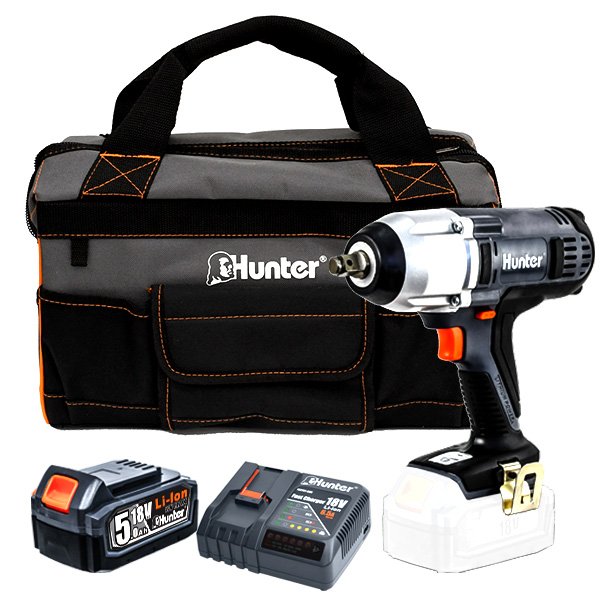 מפתח אימפקט מקצועי נטען 18V כולל סוללה 5Ah מטען מהיר ותיק בד ייעודי של Hunter, כלי אידיאלי עוצמתי וחזק, מהיר פי 2 מהמברגות הרגילות ויכול לבצע את העבודה בצורה מהירה יותר. מומנט גבוה במיוחד של 450N.m המבטל את הצורך להשתמש בכלי פניאומטי ומשמש בעיקר לשחרור/הידוק של ברגים גדולים במיוחד, מחברים קפואים או חלודים, החלפת גלגלים, הרכבה של ציוד כבד ותחזוקה בקיצור כלי חובה בכל מוסך.